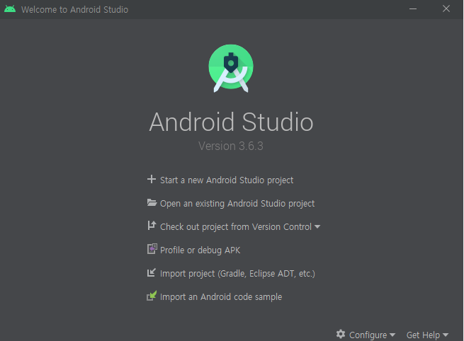 시작 화면에서 맨 위에 있는 Start a new Android Studio Project를 눌러 새 프로젝트를 시작한다.