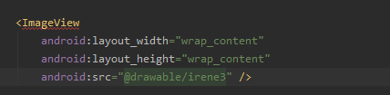 일단 다양한 아이린 사진을 사용하고 싶기 때문에 구글링으로 다운로드 받아 res 폴더 안에 있는 drawable 폴더 안에 드래그하여 넣어줬다. 나는 drawable 폴더에 irene3라는 파일을 넣었기 때문에 main에 이미지 뷰에 대해서 적어줘야 한다. [잘모르겠다면 이전 포스트에 사진으로 설명한 곳이 있으니 참고하면 좋을 것 같다.]