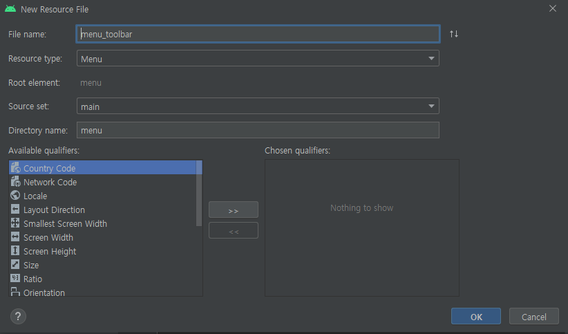 File name : menu_toolbar (대문자는 사용할 수 없다.)