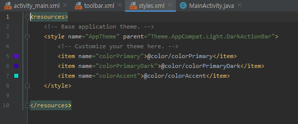 styles.xml 파일을 처음 들어가면 위와 같은 내용이 적혀있는데 바꿔줘야 하는 내용이 있다.