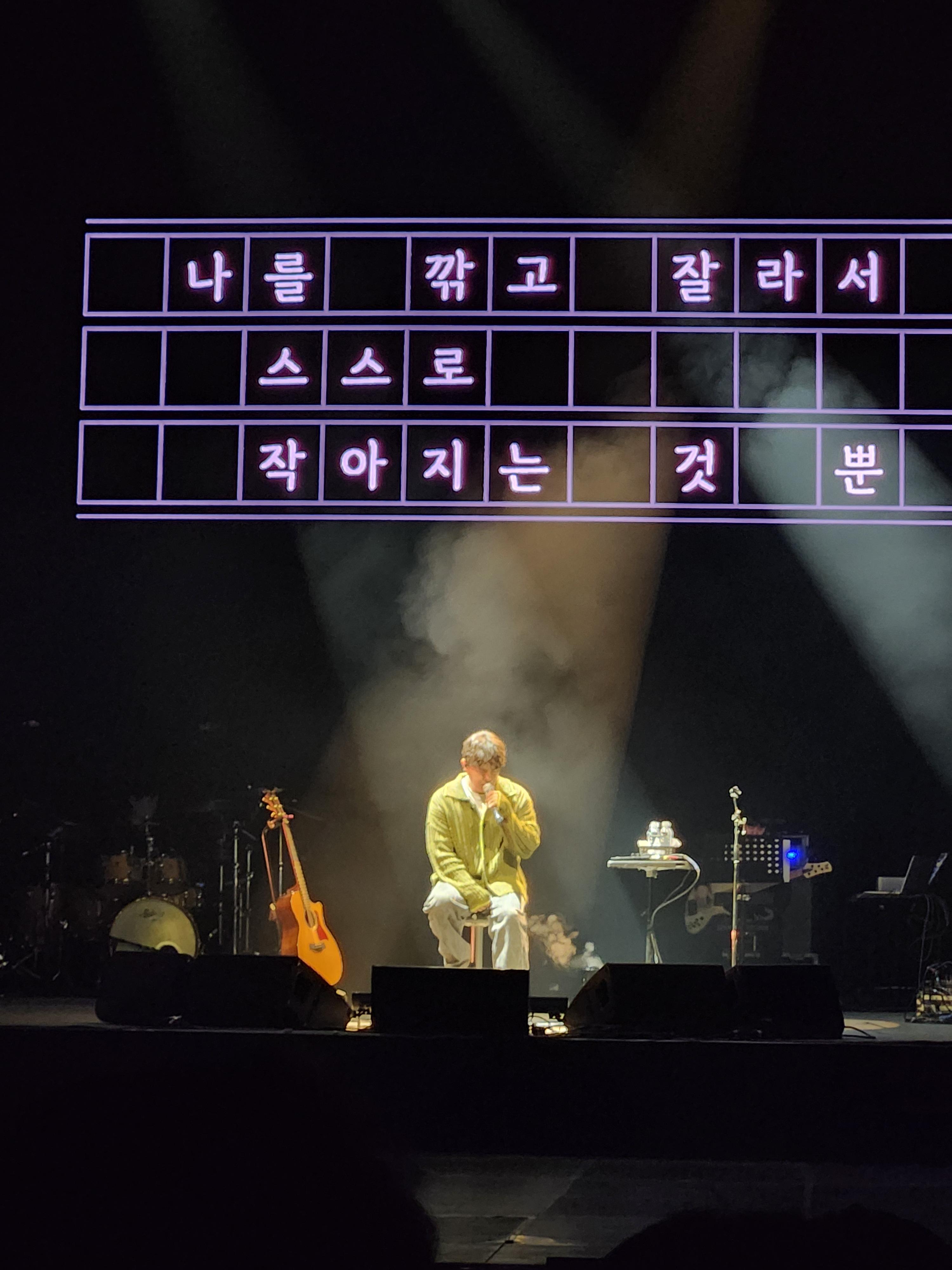 콘서트 진행은 2곡 후 토크 타임 후 다시 2곡 순서였다. 크게는 1부 / 2부로 나누어서 진행했는데 1부 / 2부를 테마로 나누거나 하지는 않았던 느낌이다.