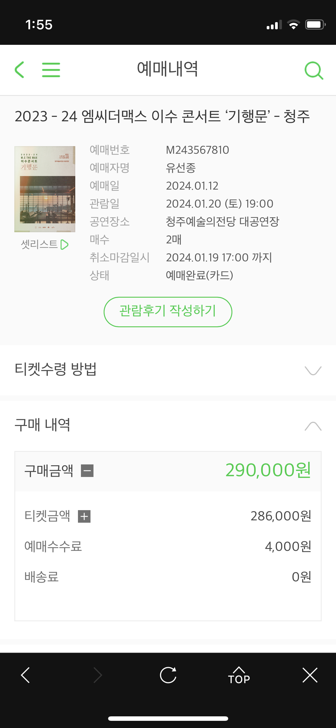 올해 들어서 1월 무렵에 나는 MC THE MAX 16년도 라이브 영상과 최근 라이브 영상을 보면서 더 늦어지기 전에 직접 라이브를 보러와야겠다 생각이 들었고, 백수인 나는 곧장 실행에 옮겨서 기행문 청주 티켓을 예매했다.