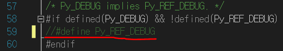 #define Py_REF_DEBUG -> 주석 처리