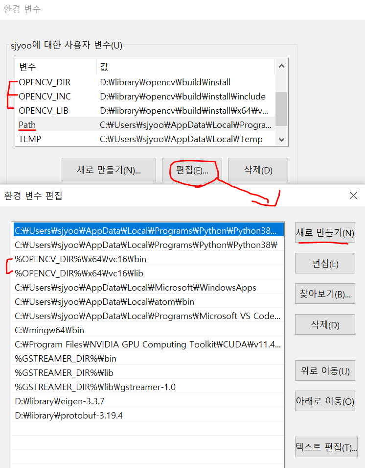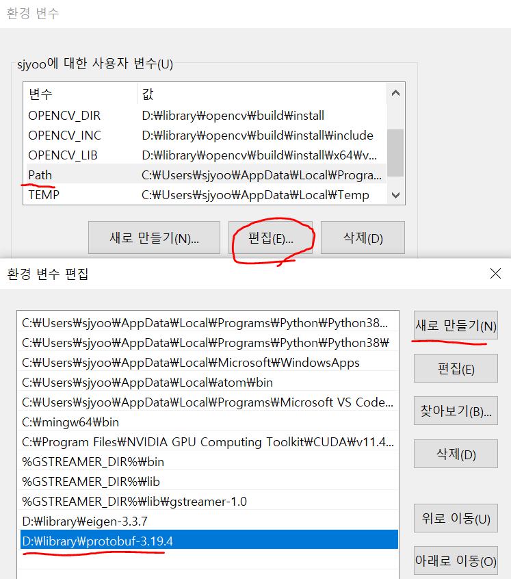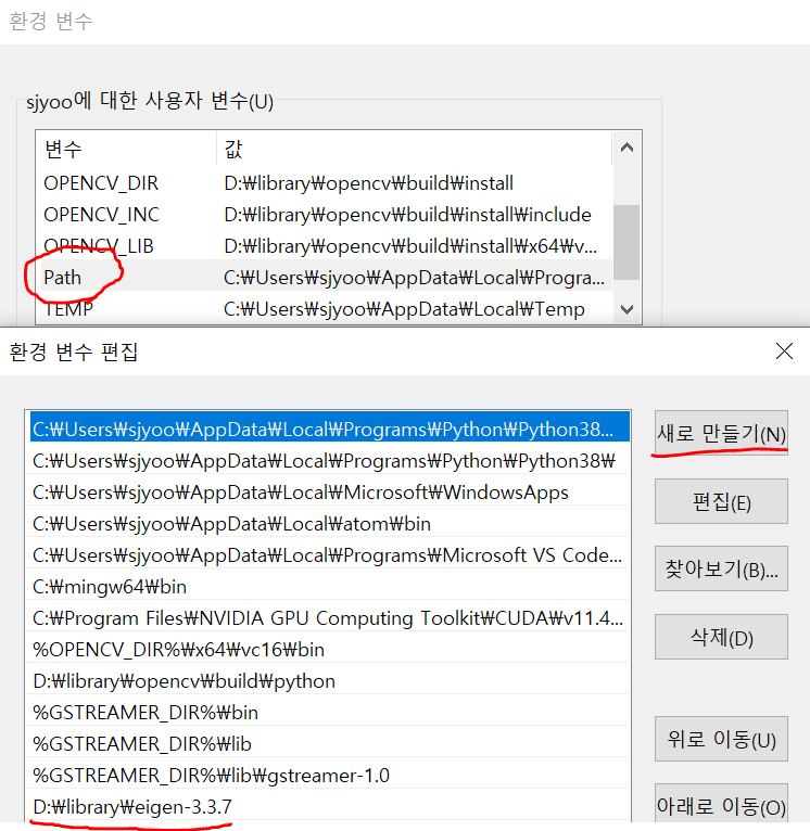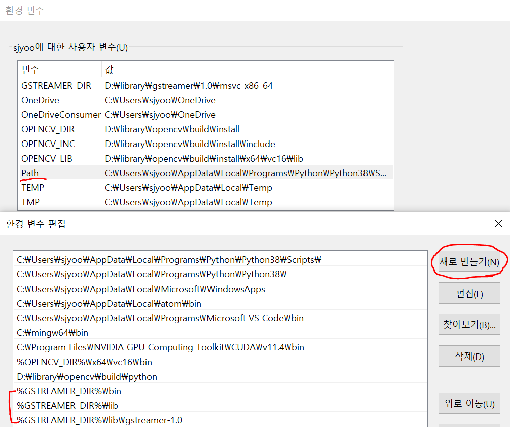 <사용자 변수 - Path 편집>