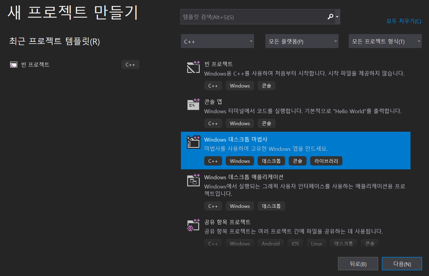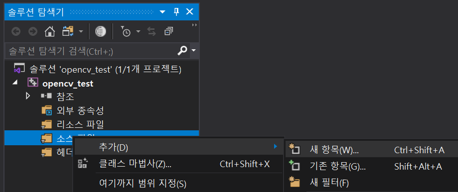 먼저 빈 프로젝트를 하나 만들고 소스 파일에 cpp 파일을 하나 만든다.