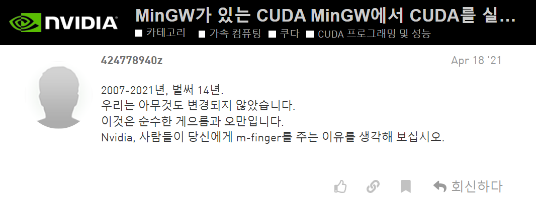 ※ CUDA가 MinGW를 지원하지 않는다.