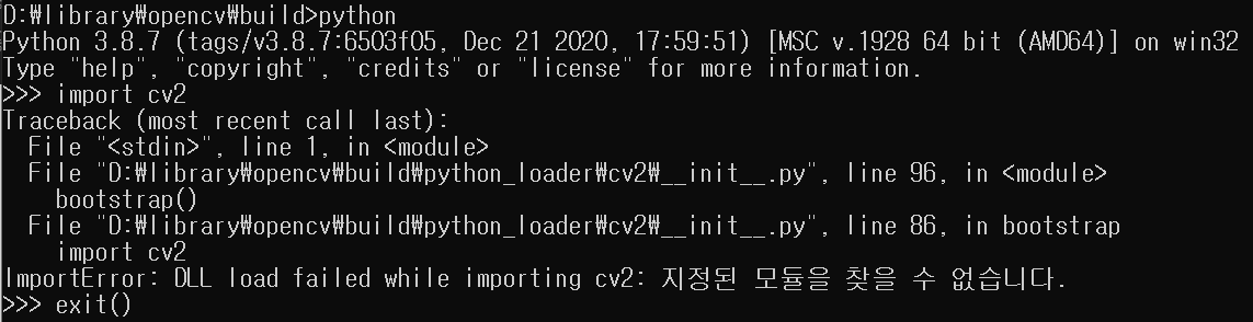 ◎ ImportError : DLL load failed while importing cv2: 지정된 프로시저를 찾을 수 없다.