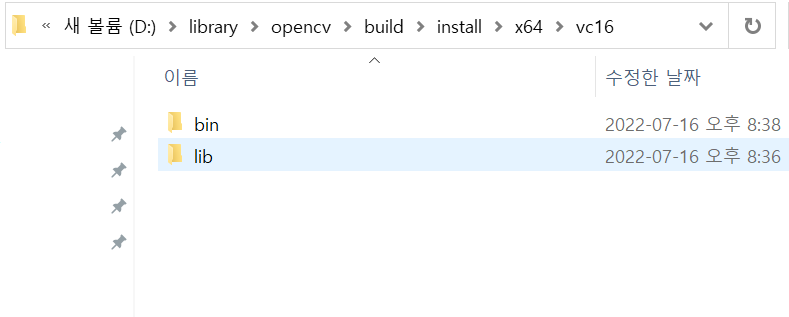 위에서 따로 INSTALL을 마무리하고 나면, vc16의 bin, lib 디렉터리가 생기는데 위치를 확인하고 나서 이 경로를 환경 변수로 등록한다.