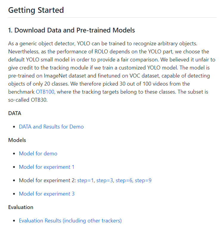 ROLO 훈련된 모델 및 데이터 다운로드 주소