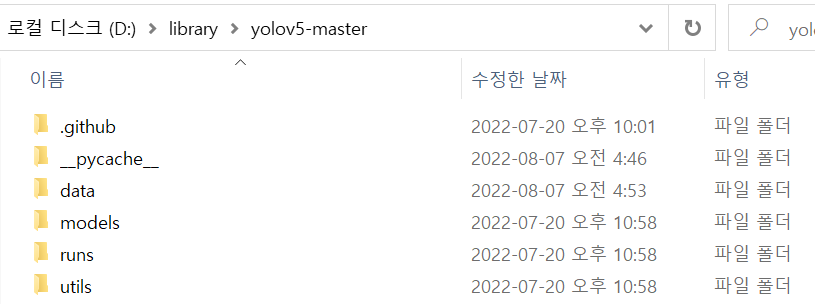 // 내 디렉터리 - D:/library/yolov5-master