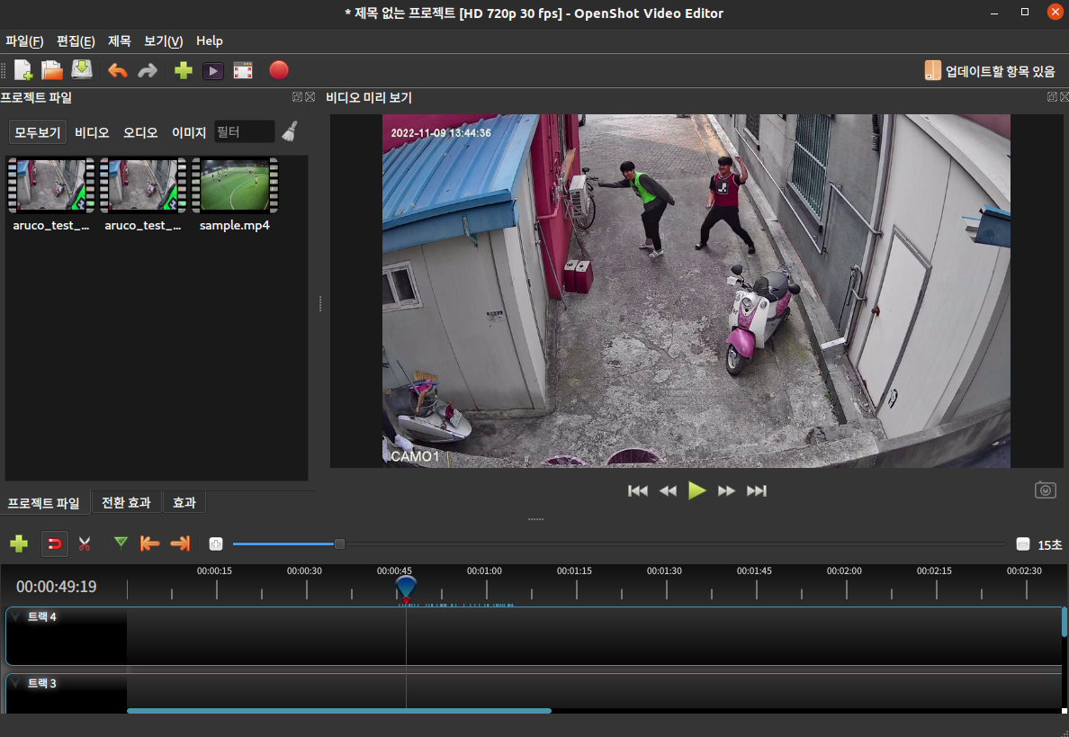 영상을 다운로드해서 내가 사용할 부분만 비디오 편집 프로그램을 이용하여 잘라냈다. 비디오 편집 프로그램으로는 오픈샷 비디오 에디터를 사용했다. 세부적으로 영상을 편집하는 것이 아니라 영상 길이를 자를 수만 있으면 됐기에 간단하고 가벼운 소프트웨어가 필요했다.