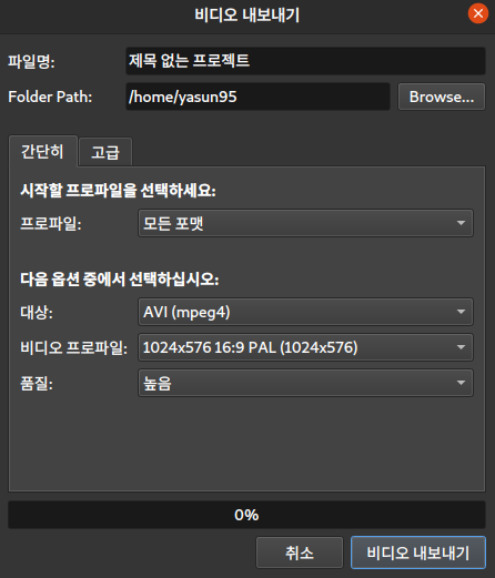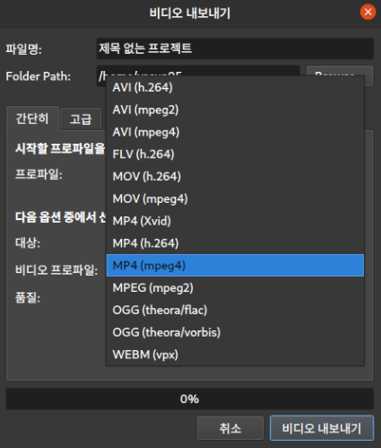 영상 길이를 잘라내 시간을 줄이고 저장할 때 비디오 코덱과 해상도, fps를 선택할 수 있다.