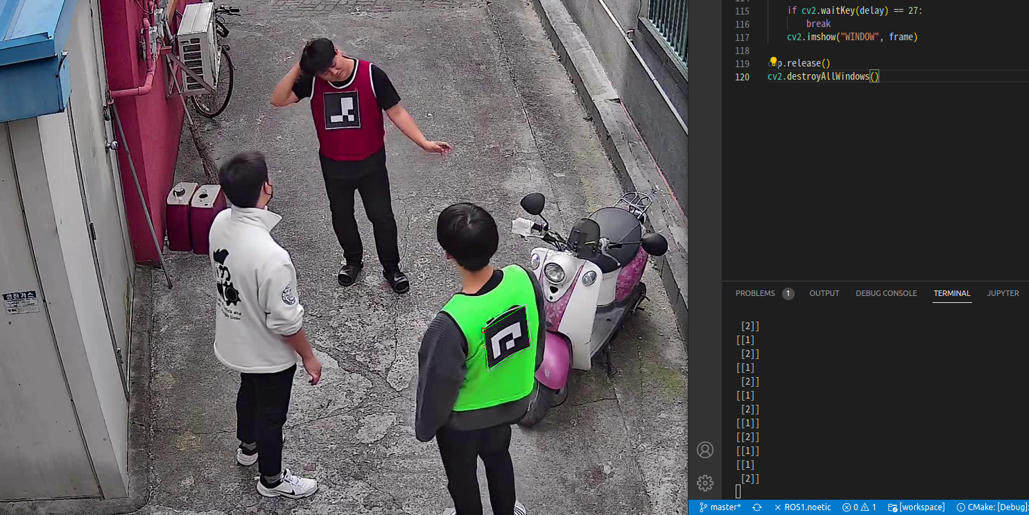 자취방 마당 앞에서 촬영을 했다. 사람들이 지나가면서 다 쳐다보니 주목을 받아 기분이 좋지 않을 수가 없었다. 사진 오른쪽 하단을 보면 터미널에 [[1], [2]] 출력을 볼 수 있다. CCTV 카메라 기준으로 상단 끝 부분까지는 약 6~7m 가까이 되고 약 10m까지는 인식이 된다. (물론 멀어질수록 인식률이 떨어지긴 하다.)
