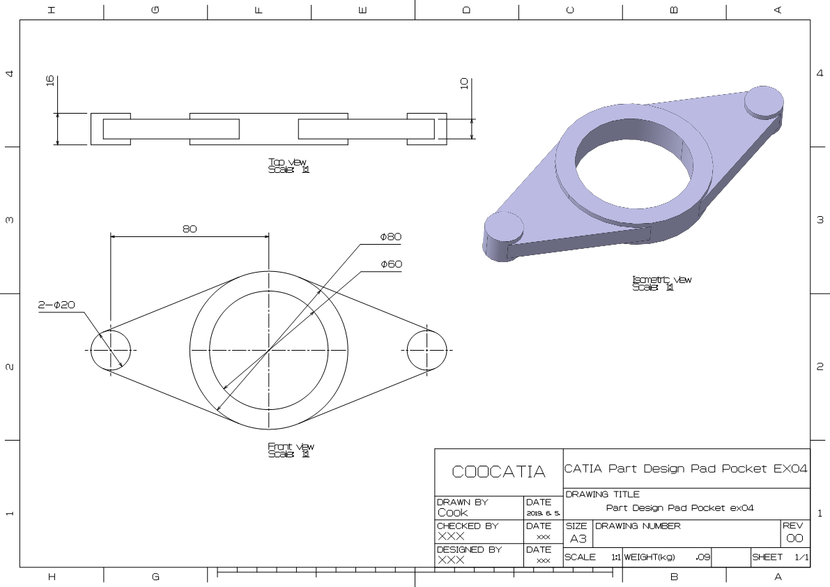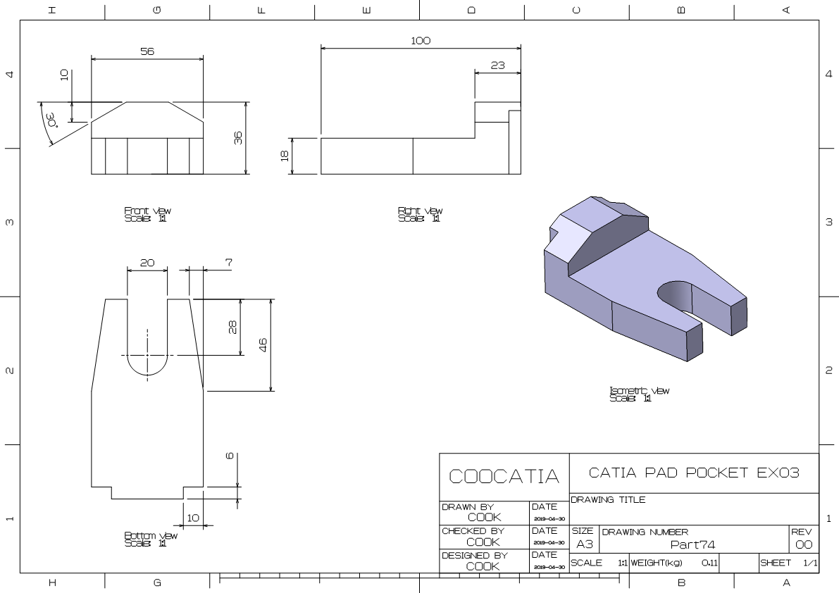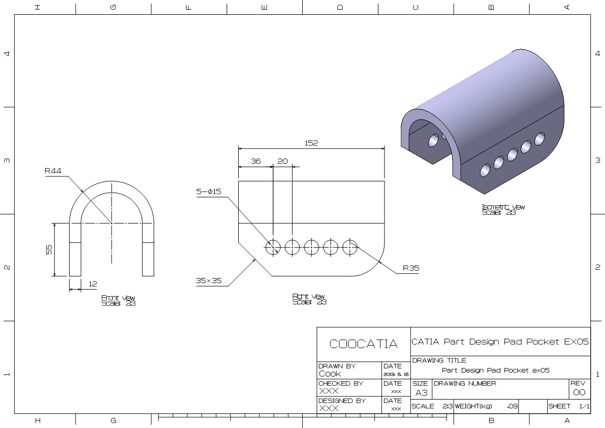 ◎ Direction - One Side : 이번에는 Direction의 기능을 살펴보자. Direction에는 One Side, Two Sides, Symmetric 총 3가지 기능이 있다. One Side는 한 방향, Two Sides는 두 방향, Symmetric은 대칭 구조를 의미한다. One Side는 위에서 했던 것(Start - Profile Plane)과 같은 내용이므로 따로 사진자료를 추가하지 않겠다.