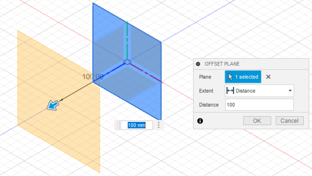 이 기능을 클릭하여 우리가 스케치한 사각형 평면으로부터 100mm Offset 한 평면을 새로 만들어보자.