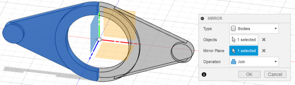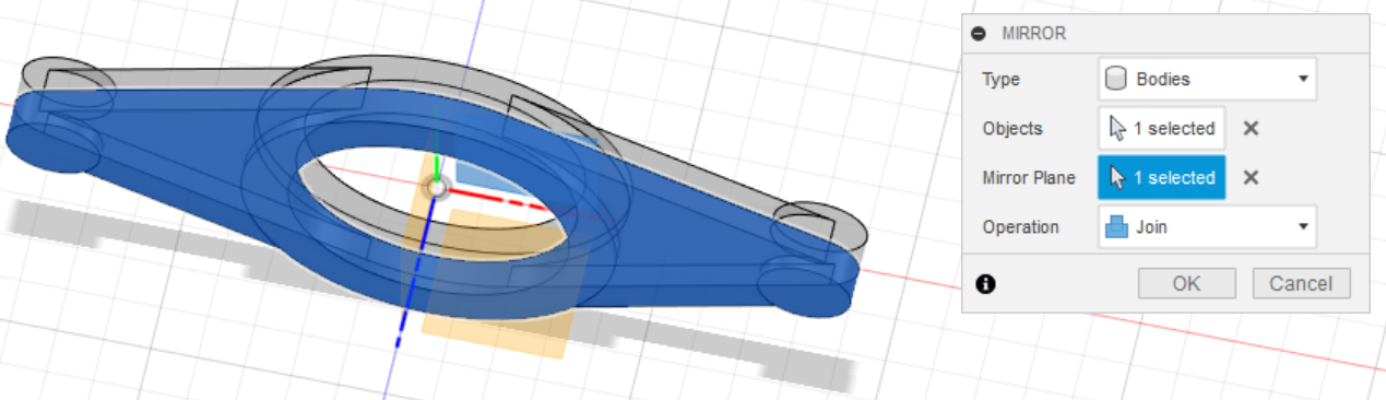 지난주 2D 스케치에서 Mirror 기능을 사용했다. 3D에서도 Mirror 기능을 사용할 수 있으니, 위 예제에서 사용해보도록 하자.