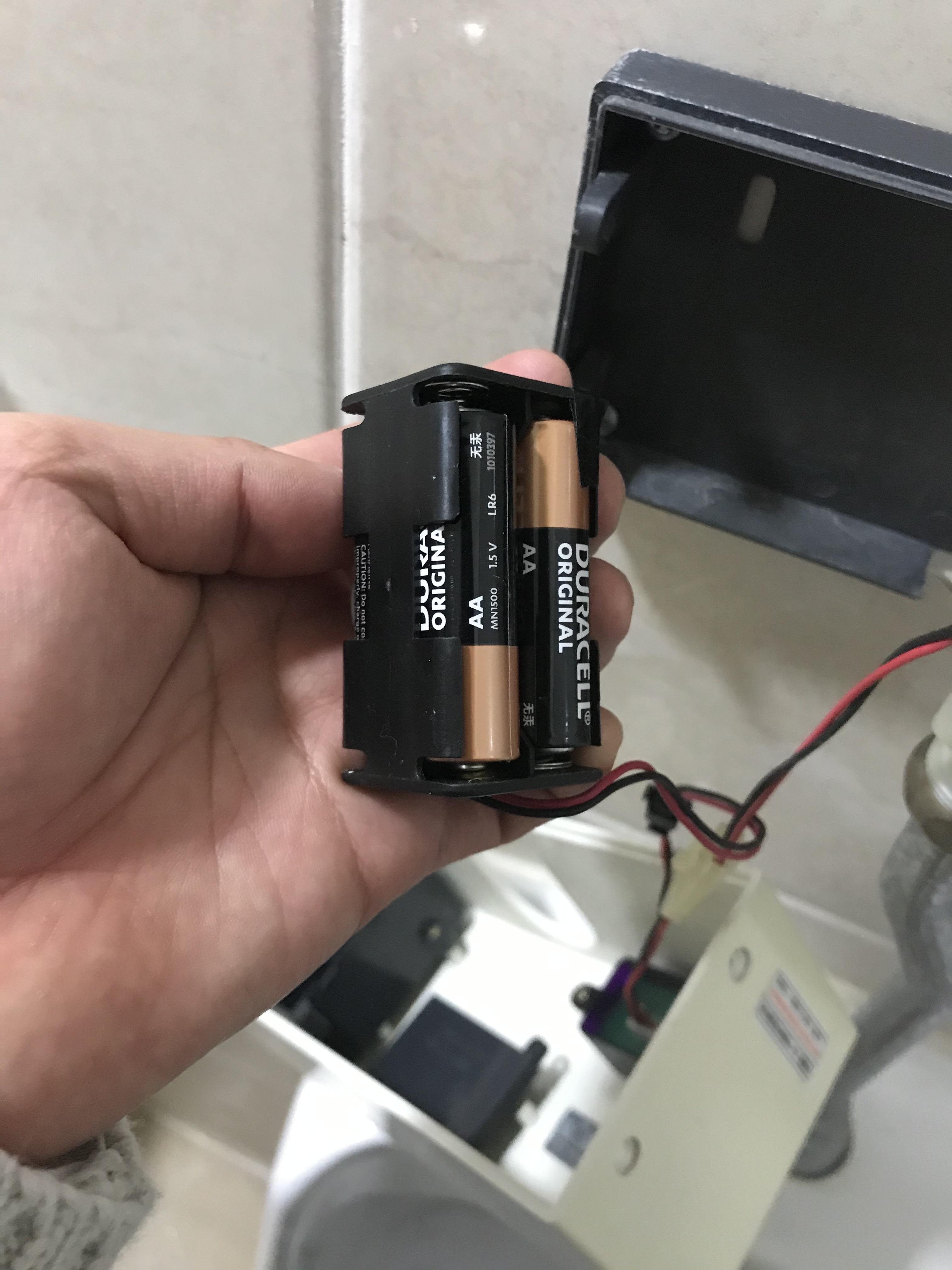 멀티 미터기가 있다면 어느 부분에 전기가 안 흐르는지 금방 알 수 있었겠지만, 긴급 퀘스트여서 준비하지 못했다. 더블 A 사이즈의 1.5V 건전지 4개가 들어가는 배터리 홀더와 PSD로 보이는 두 부품만 깔끔하게 있어서 이건 나도 고칠 수 있겠다 싶었다. 다행히도 센터에서 아이들에게 아두이노를 가르친 적이 있어서 키트가 있었고 안에 점퍼 케이블도 있었다.