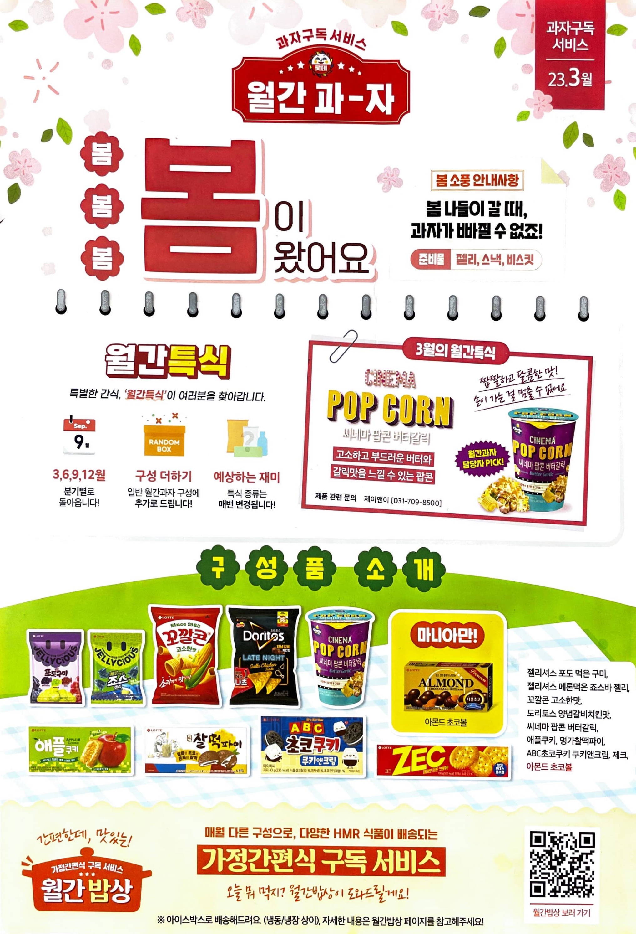 2월에 먹지 못한 과자들이 아직도 한 가득인데 3월 과자팩이 와버렸다. 몽쉘은 가끔 당떨어지면 수혈(당혈?)용으로 하나씩 집어먹는다.