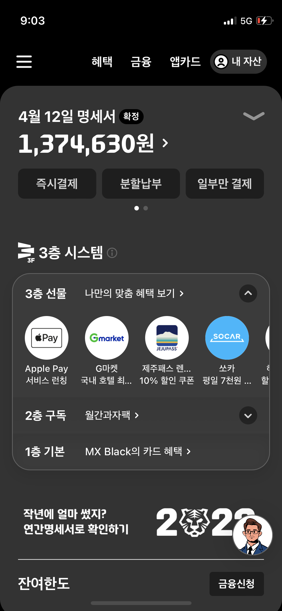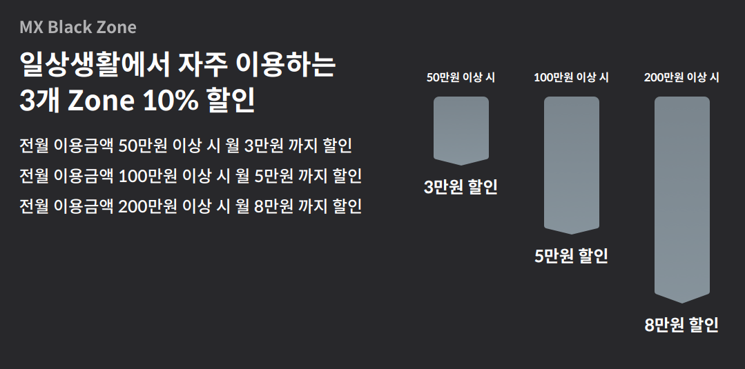 내가 쓰고 있는 현대 MX 블랙 카드다. 월 100 이상 쓰는 내게 상당히 좋은 혜택이라서 연회비 15만원은 그닥 부담스럽지 않았다. (3개월만에 할인 혜택으로 뽕을 뽑았다 이것이지)