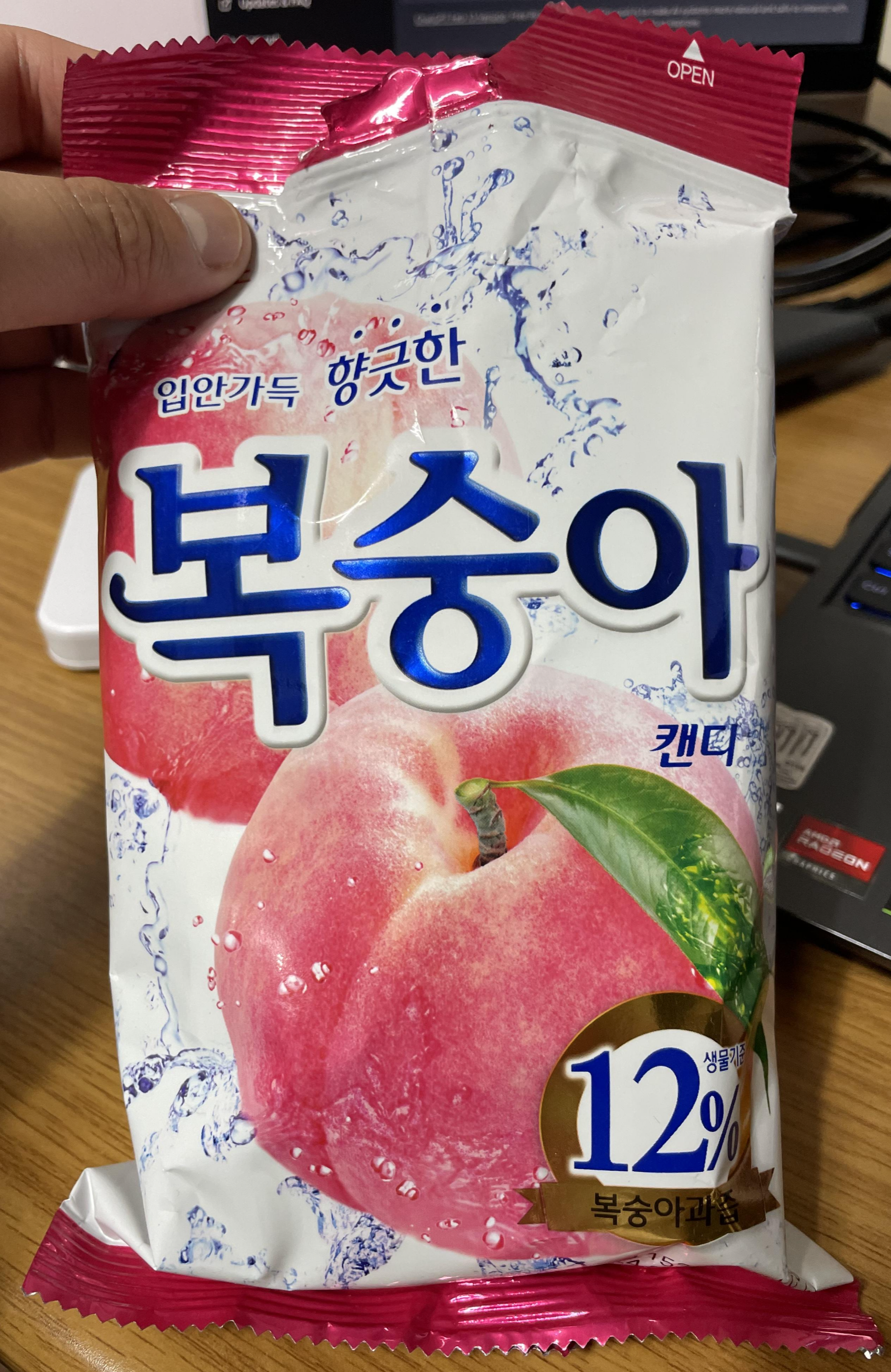 가끔 한 번씩 먹는 과자류보다는 사탕 같은걸 주기적으로 꺼내 먹는 편인데 아래의 복숭아 사탕은 저번달 과자 구독팩에 있던 거고 2~3일에 하나씩 먹는걸로 재미좀 봤었다. 롤리팝 아이스 사탕도 요런 느낌으로 하나씩 먹었다.