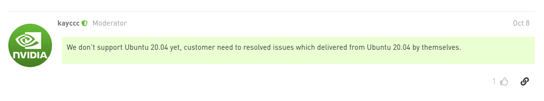 아직 우분투 20.04를 지원하지 않으니 업그레이드해서 생기는 에러들은 직접해결해야한다고 하신다.