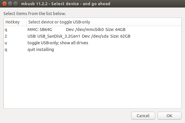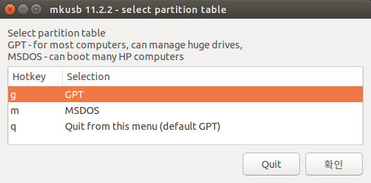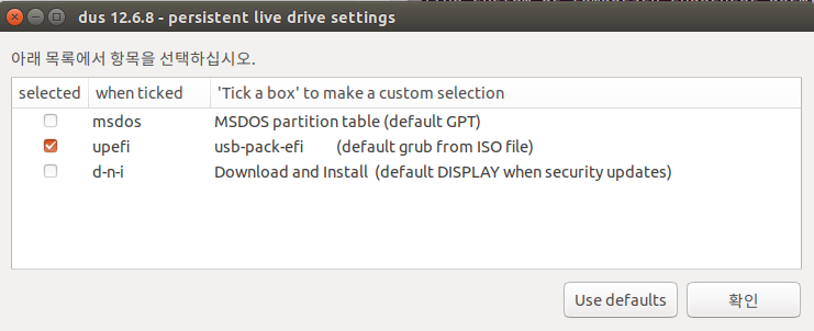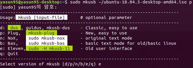 mkusb는 ISO 이미지나 압축된 이미지 파일을 플래시하여 부팅 드라이브를 만드는 소프트웨어이다. 사용자에게 편리한 인터페이스를 제공하기 위해서 GUI모드 , TEXT모드 모두를 지원한다. 그중에 얼떨결에 사용하여 성공한 dus는 GUI모드에 속한다.그리고 mkusb를 실행하고 e 옵션으로 진행하는 eleven 옵션도 GUI모드에 속한다.