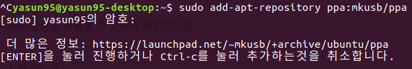 이 과정은 젯슨 나노로 진행하였기 때문에 universe가 체크 되어있다. ppa를 이용해서 mkusb의 최신버전을 다운로드를 할 수 있는 저장소를 불러온다.