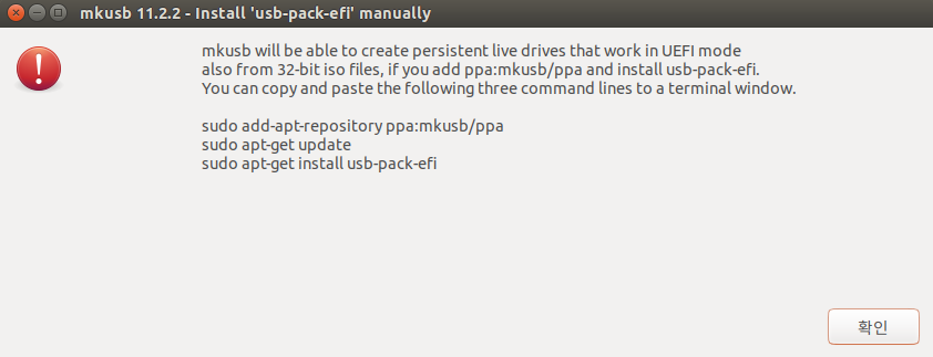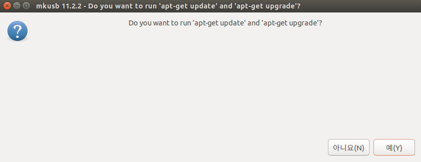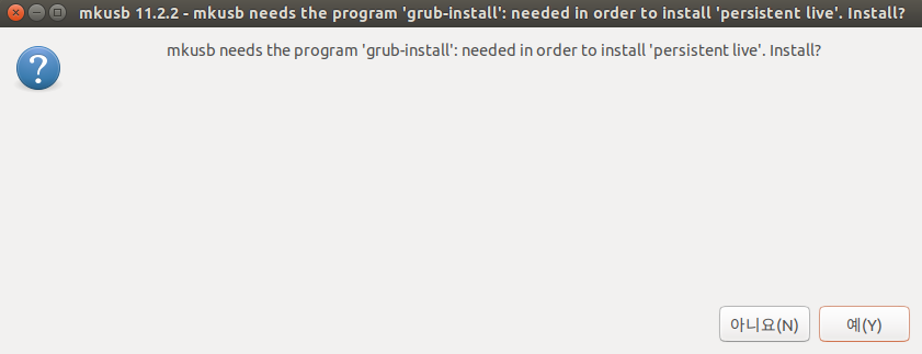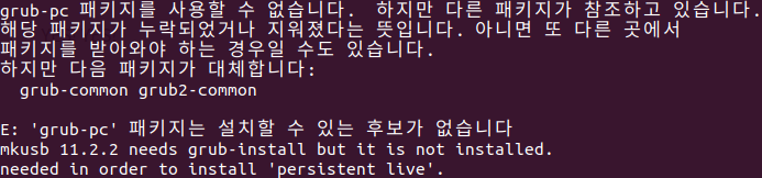 mkusb로 persistent USB를 만들기 위해서는 grub-install 프로그램이 필요하다! 업데이트, 업그레이드를 하겠니?