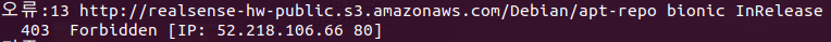 위 문구를 입력하고 sudo apt update 해도 여전히 처리되지 않는 에러들이 있었다. realsense에 관한 문제이다. 아마존 서버에 문제가 있는 것 같다는 추측을 하고 해당 에러 메시지와 새 서버를 검색하다가 인텔 서버를 발견했다.