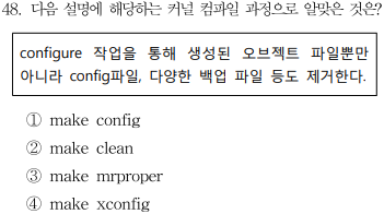 ③ make mrproper ☞ 커널 컴파일 초기화, 기존 설정된 값을 초기화하며 컴파일되어 있는 오브젝트 파일뿐만 아니라 config파일과 백업 파일이 제거된다.