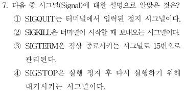 ① SIGQUIT (X) ☞ SIGSTOP에 대한 설명이다.