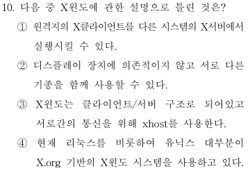 ④ X 윈도 시스템은 2004년 X.org 재단에서 개발하였고 유닉스 대부분에 사용되고 있다.