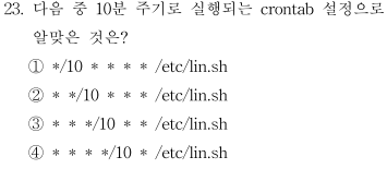 정답 ☞ ① */10 * * * * /etc/lin.sh