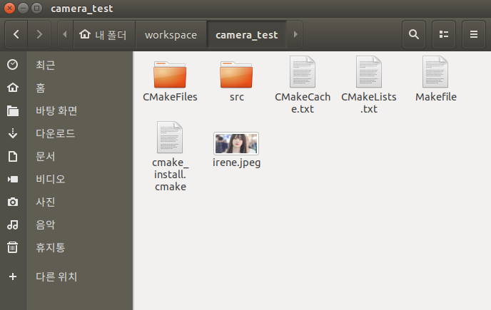 add_executable과 target_link_libraries의 camera_test 부분에는 ${PROJECT_NAME} 환경 변수를 넣어도 문제 없이 작동한다. 작성을 완료하고 cmake와 make를 진행한다.