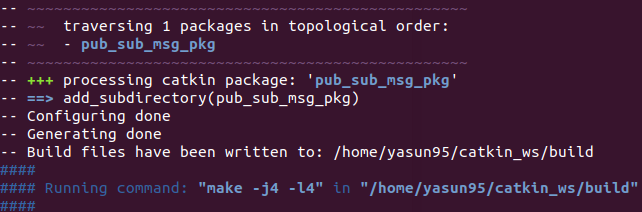 catkin_create_pkg pub_sub_msg_pkg std_msgs roscpp message_generation actionlib actionlib_msgs