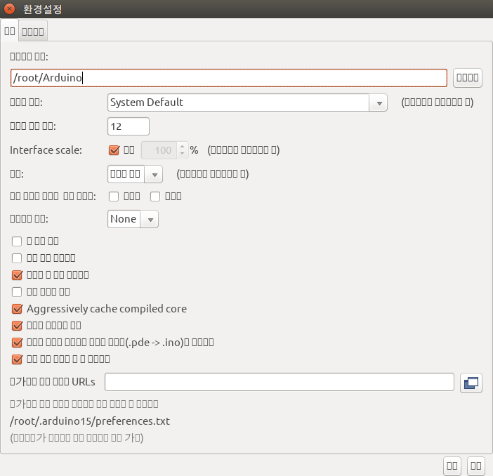 아두이노를 실행한다. (sudo를 쓰고 실행하면 허가 거부 문구가 없어진다. 물론 sudo로 실행했기 때문에 저장한 sketch도 root에 생긴다.)