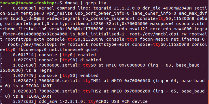 dmesg | grep tty