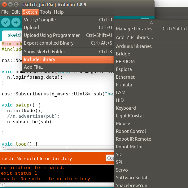 sudo apt-get install ros-melodic-rosserial ros-melodic-rosserial-arduino