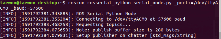 rosrun rosserial_python serial_node.py _port:=/dev/ttyACM0 _baud:=57600