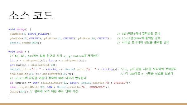 회로도에 있는 조이스틱이 우리가 사용한 조이스틱과 배선이 다르다. 아래의 내용을 참고하기바란다.