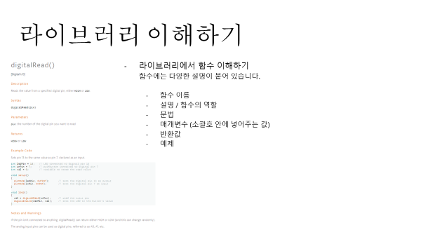 라이브러리는 아두이노 공식 홈페이지 라이브러리 레퍼런스 부분에 가면 더욱 자세히 확인할 수 있으니 참고바란다.