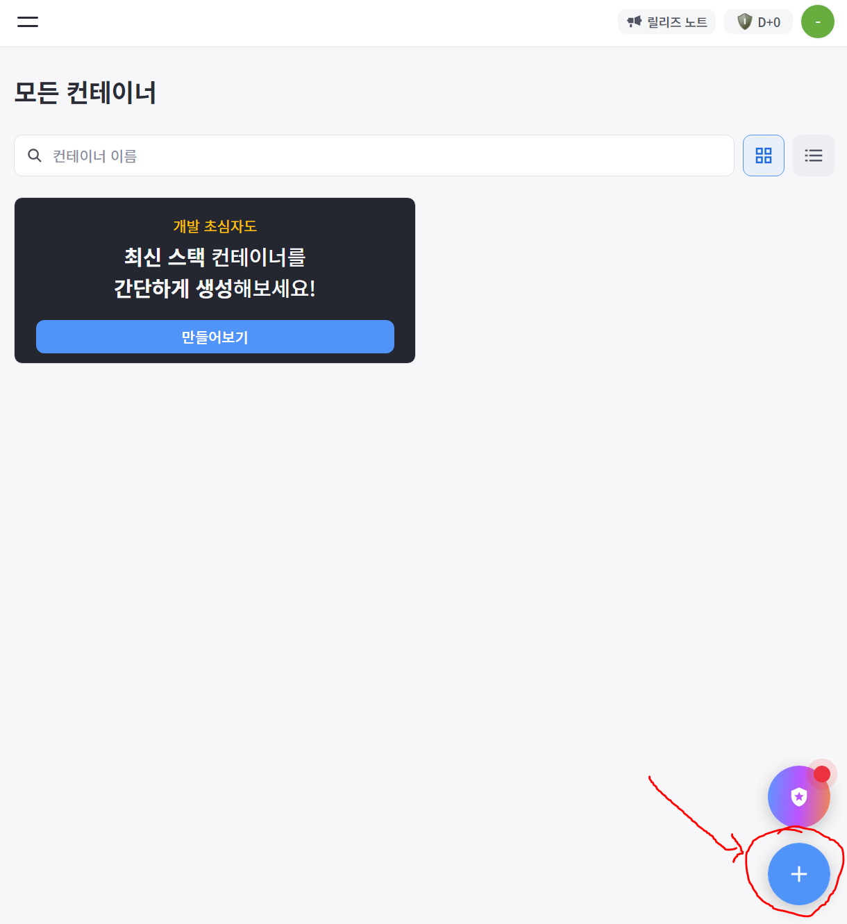 화면 아래에 보면 + 버튼이 있는데 이를 클릭하면 컨테이너 생성하기 전에 설정 창이 나온다.