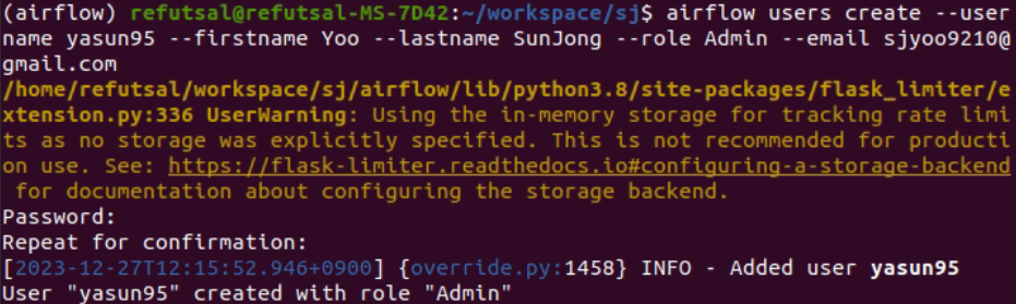 airflow users create --username yasun95 --firstname yaho --lastname sunjong --role Admin --email sjyoo9210@gmail.com