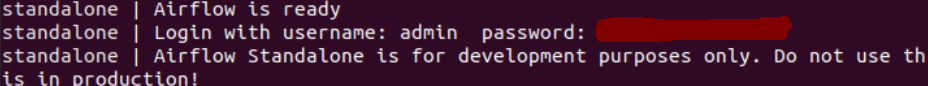 airflow standalone을 입력한 경우에는 다음과 같은 문구가 출력된다.